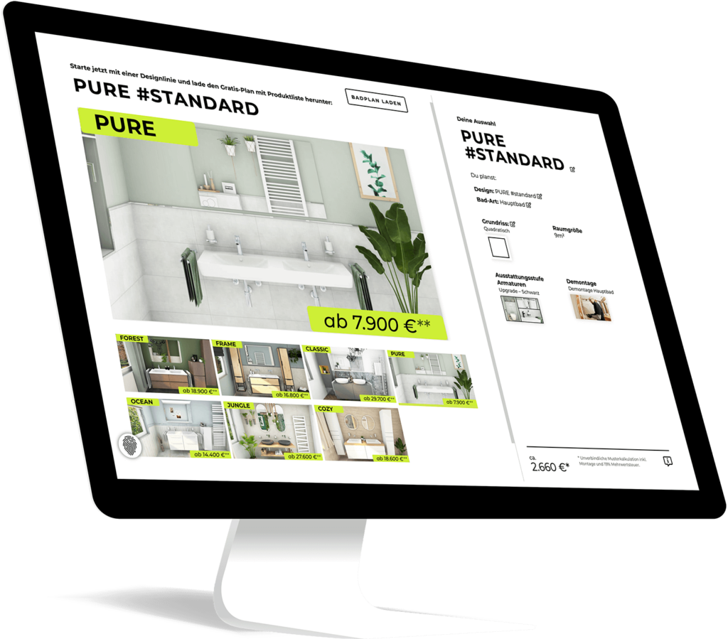 Nutze unseren digitalen Badplaner, der dir als letzten Schritt eine präzise Stückliste für die Handwerker:innen deiner Wahl gibt.