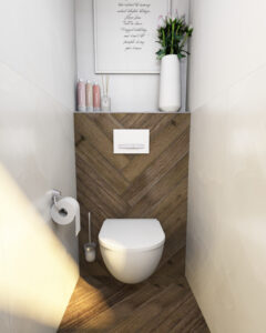 Holzfliesen im Badezimmer schaffen eine gemütliche und natürliche Wohlfühlatmosphäre. Ihr zeitloses Design verleiht dem Raum einen einzigartigen Charme und strahlt Behaglichkeit aus. Sie sind wasserbeständig und lassen sich leicht reinigen. Eine einfache Pflege reicht aus, um ihre Schönheit und Haltbarkeit zu bewahren.