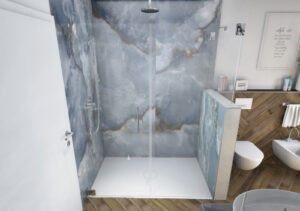Die Bette Air Rechteck-Duschwanne beeindruckt mit ihrem flachen Design und ihrer strapazierfähigen Stahl-Emaille-Konstruktion. Sie ist erhältlich mit Pendeltür und Festfeld sowie als Pendeltür mit Eckeinstieg.
