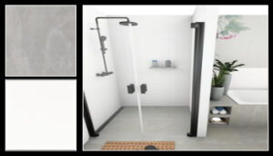 Die „Nord Cream“ Feinsteinzeugfliese in Hellgrau (598x598x8mm) verleiht dem Badezimmer mit ihrer schlichten Eleganz und rektifizierten Kanten eine moderne Note. Ihre Größe und Farbe schaffen Weite und eine ansprechende Basis für den „Modern“-Stil. Die „McTile Wandfliese Caldero“ in Weiß (598x298x8mm) fügt mit ihrer glänzenden Oberfläche und minimalen Fugen einen hellen, frischen Akzent hinzu. Ihre Kombination fördert eine minimalistische und warme Atmosphäre, ideal für das zeitgemäße Badezimmerdesign, indem sie Sauberkeit und eine klare, offene Raumwirkung betont.