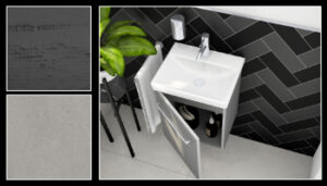 Die „Cinca Wandfliese Cosmopolitan“ in Schwarz matt (39,7×9,7x8cm) bringt Eleganz ins Badezimmer. Die „Cinca Wandfliese Cosmopolitan“ in Schwarz glänzend (39,7×9,7x8cm) ergänzt mit ihrer reflektierenden Oberfläche. Die Kombination aus Matt und Glanz erzeugt eine visuelle Tiefe. Die „Casa dolce Sensi by Thun“ in Grey Dust matt (120x60x10cm) harmoniert mit ihrem großformatigen, grauen Design. Die Farbabstimmung und Texturunterschiede unterstützen das „Wave“-Thema, indem sie an Wasser und Wellen erinnern.